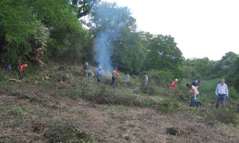 Eighteen willing volunteers helped cut back areas of overgrown scrub and brambles in The Links on Sunday 14 May to improve the appearance of Buriton’s secret valley and help local farmer, Susan Shone.